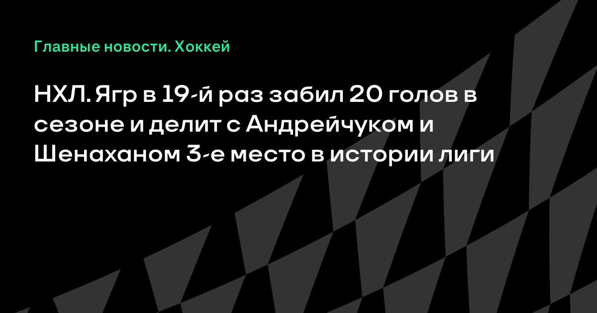 НХЛ. Ягр в 19-й раз забил 20 голов в сезоне и делит с Андрейчуком и Шенаханом 3-е место в истории лиги