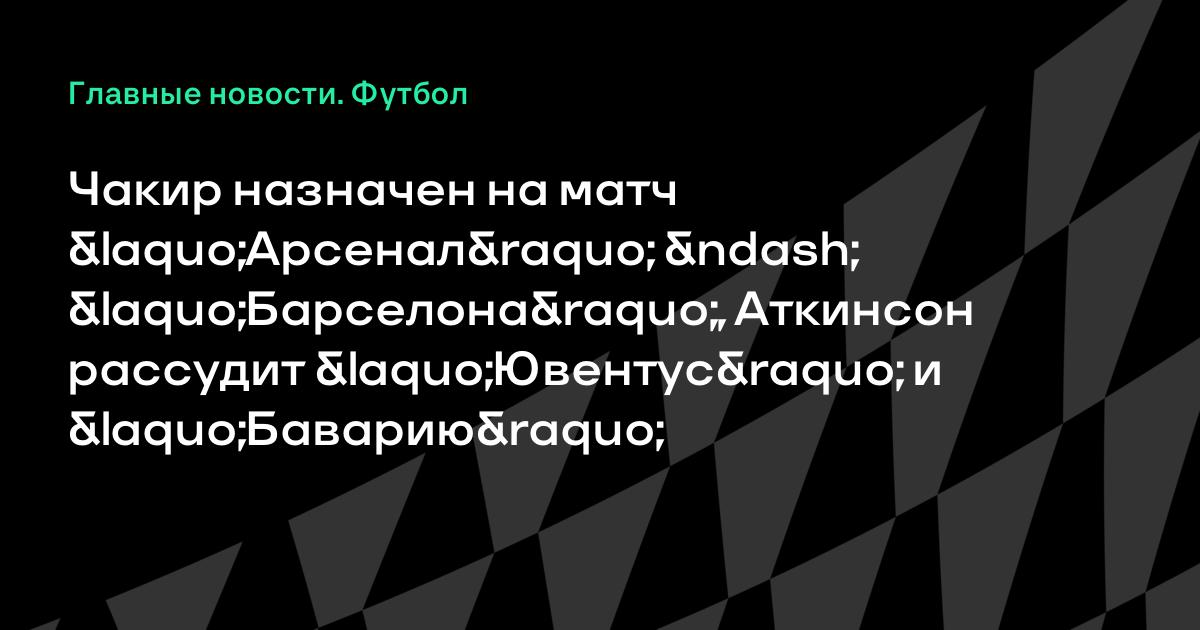Чакир назначен на матч «Арсенал» – «Барселона», Аткинсон рассудит «Ювентус» и «Баварию»