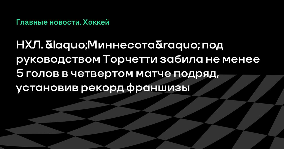 НХЛ. «Миннесота» под руководством Торчетти забила не менее 5 голов в четвертом матче подряд, установив рекорд франшизы