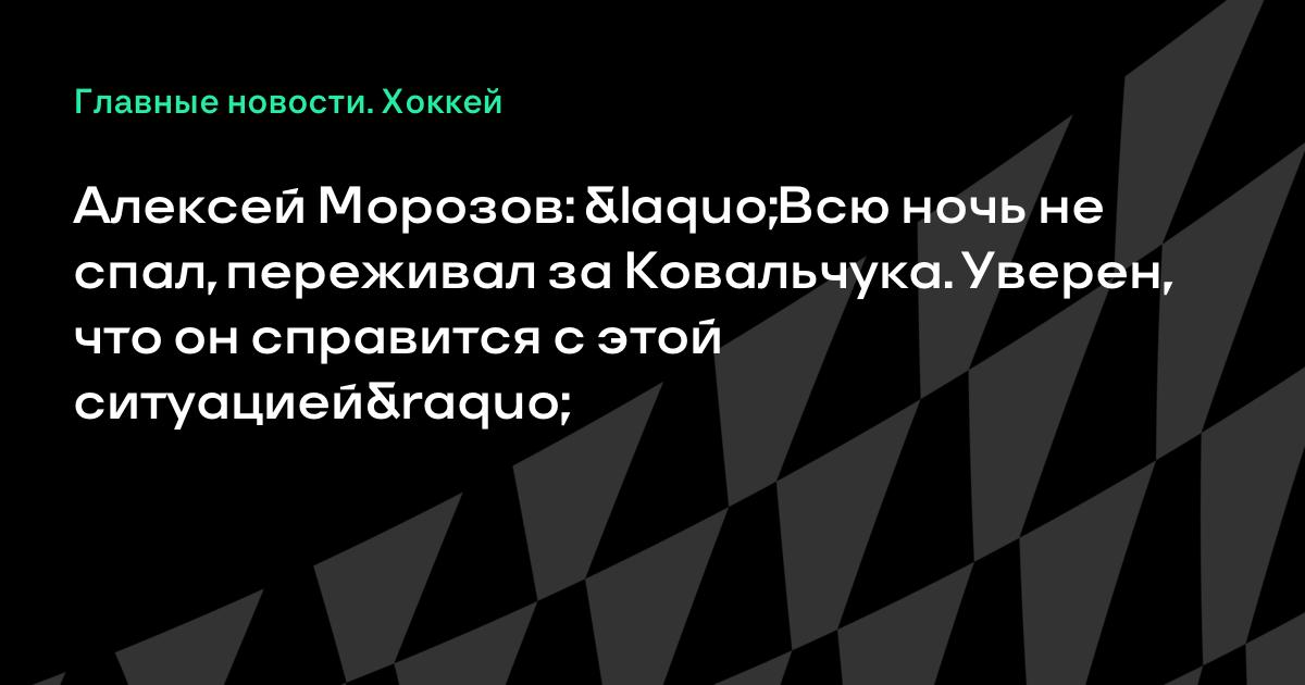 Алексей Морозов: «Всю ночь не спал, переживал за Ковальчука. Уверен, что он справится с этой ситуацией»