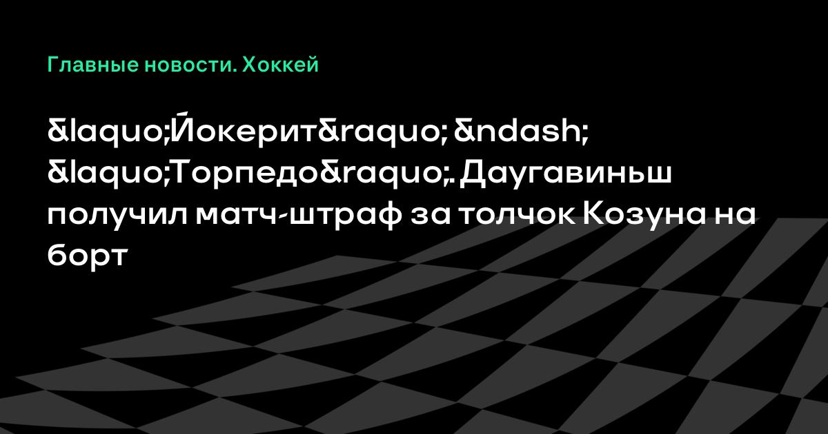 «Йокерит» – «Торпедо». Даугавиньш получил матч-штраф за толчок Козуна на борт