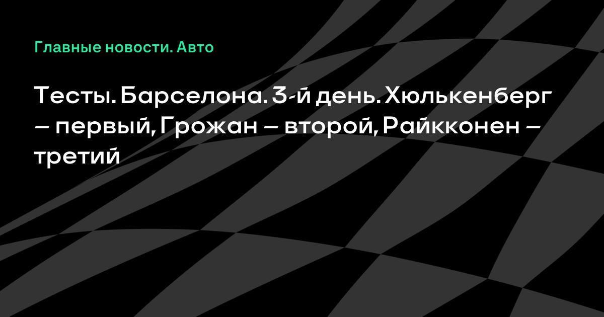 Тесты. Барселона. 3-й день. Хюлькенберг – первый, Грожан – второй, Райкконен – третий