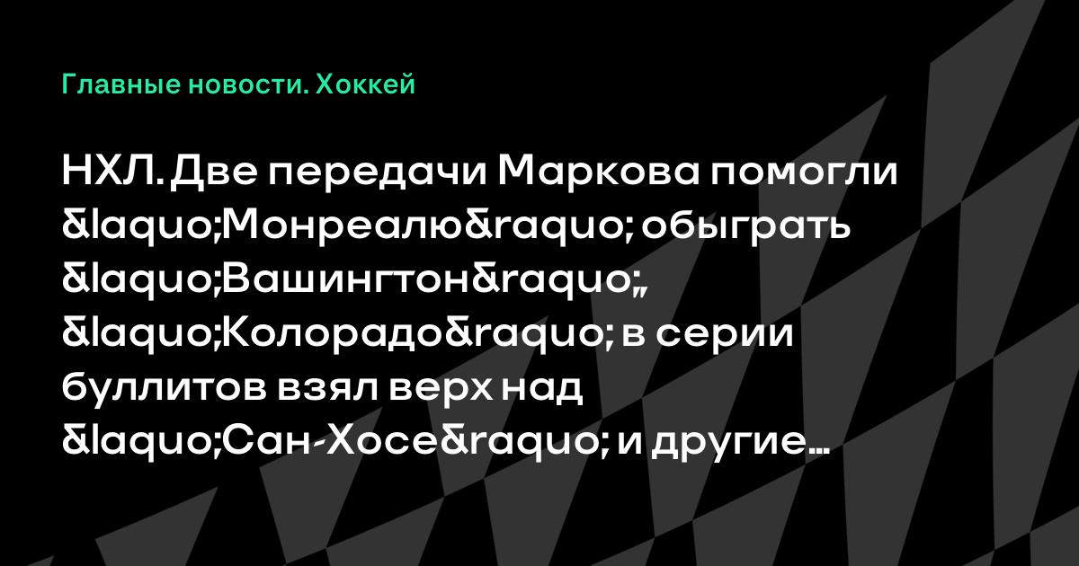 НХЛ. Две передачи Маркова помогли «Монреалю» обыграть «Вашингтон», «Колорадо» в серии буллитов взял верх над «Сан-Хосе» и другие результаты