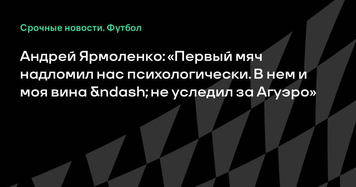 Андрей Ярмоленко: «Первый мяч надломил нас психологически. В нем и моя вина – не уследил за Агуэро»