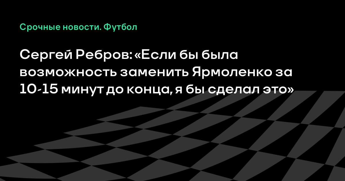 Сергей Ребров: «Если бы была возможность заменить Ярмоленко за 10-15 минут до конца, я бы сделал это»
