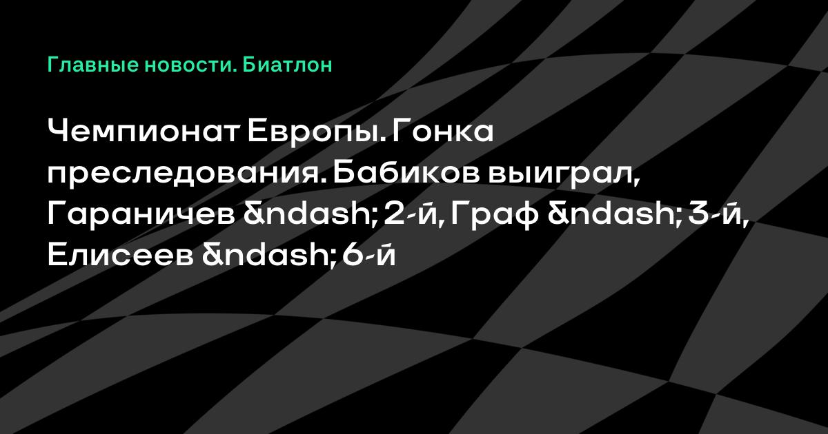 Чемпионат Европы. Гонка преследования. Бабиков выиграл, Гараничев – 2-й, Граф – 3-й, Елисеев – 6-й