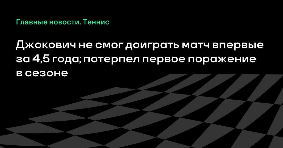 Джокович не смог доиграть матч впервые за 4,5 года; потерпел первое поражение в сезоне