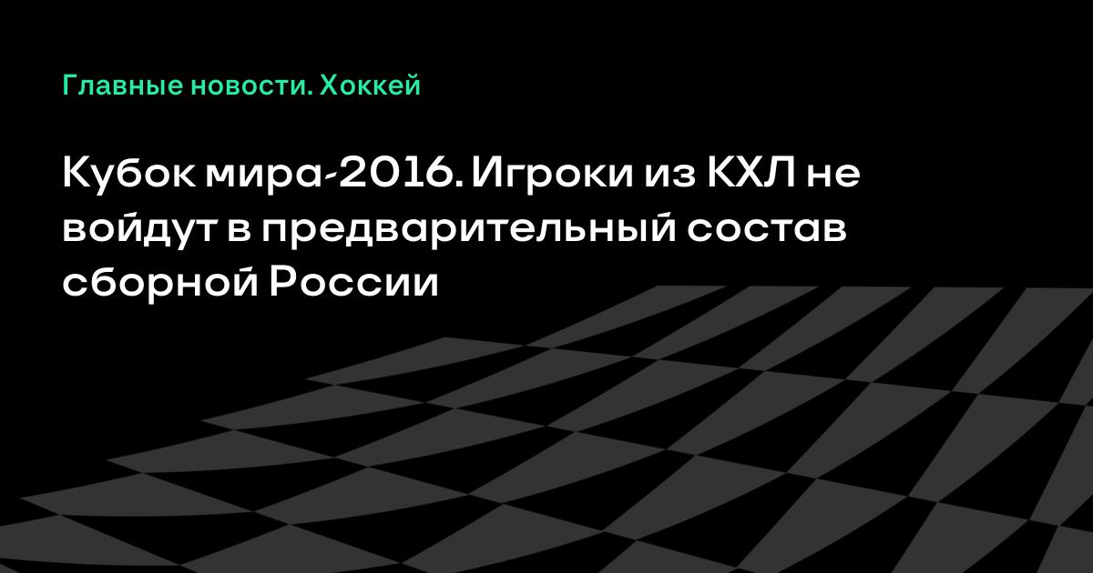 Кубок мира-2016. Игроки из КХЛ не войдут в предварительный состав сборной России