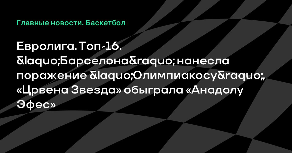 Евролига. Топ-16. «Барселона» нанесла поражение «Олимпиакосу», «Црвена Звезда» обыграла «Анадолу Эфес»