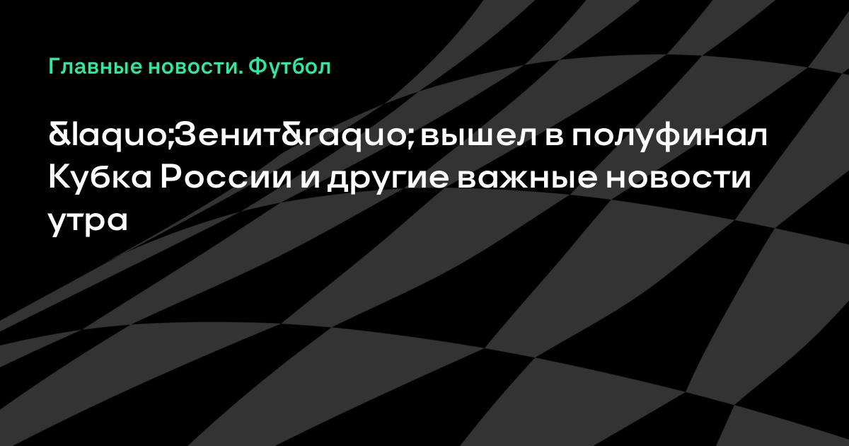 «Зенит» вышел в полуфинал Кубка России и другие важные новости утра