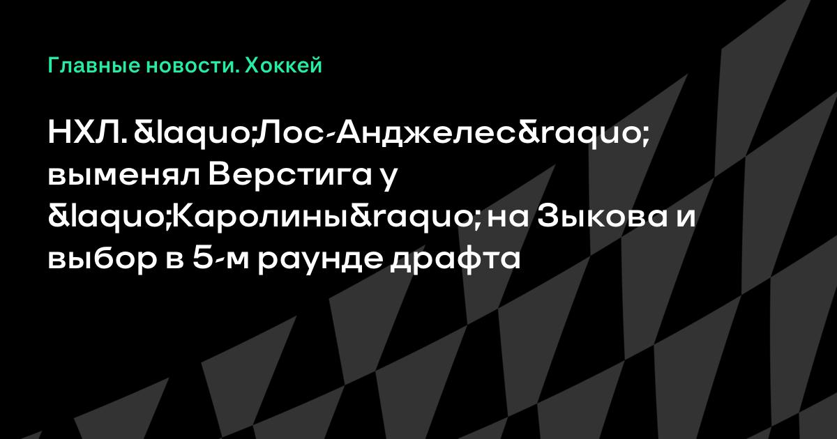 НХЛ. «Лос-Анджелес» выменял Верстига у «Каролины» на Зыкова и выбор в 5-м раунде драфта