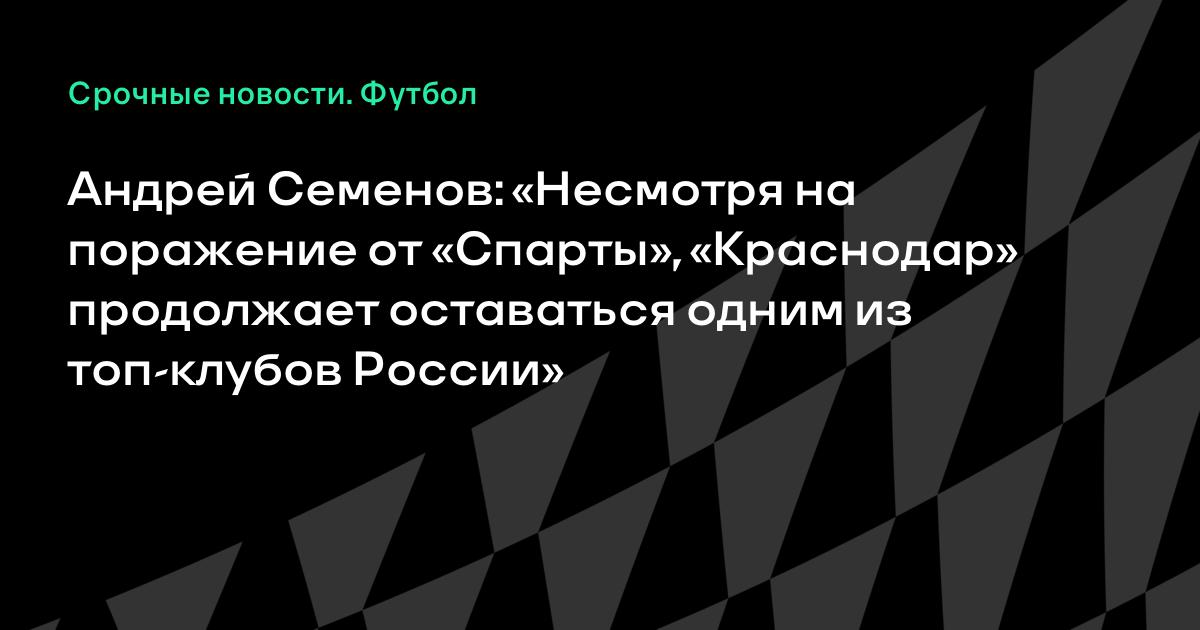 Андрей Семенов: «Несмотря на поражение от «Спарты», «Краснодар» продолжает оставаться одним из топ-клубов России»
