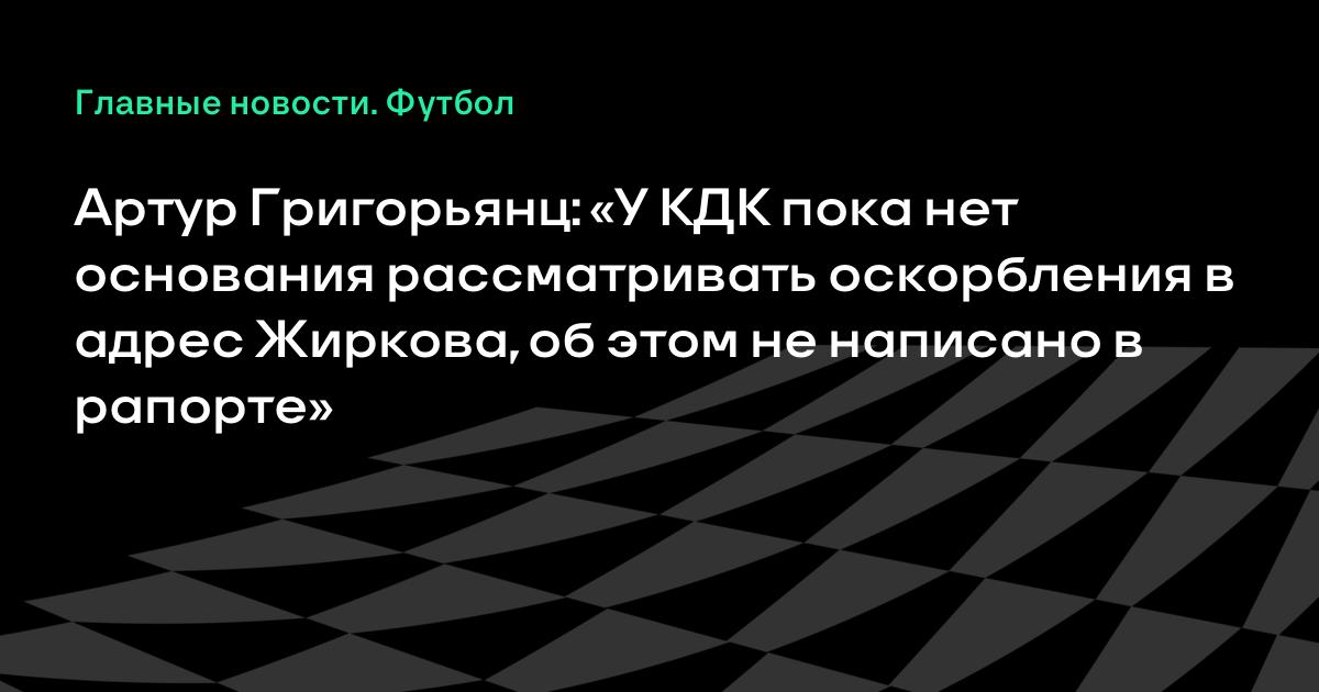 Артур Григорьянц: «У КДК пока нет основания рассматривать оскорбления в адрес Жиркова, об этом не написано в рапорте»