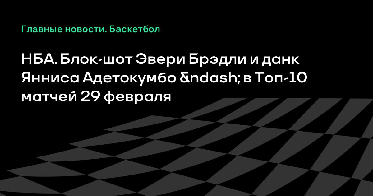 Блок-шот защитника «Селтикс» Эвери Брэдли в концовке игры с «Джаз» и данк форварда «Бакс» Янниса Адетокумбо – в Топ-10 матчей НБА 29 февраля.