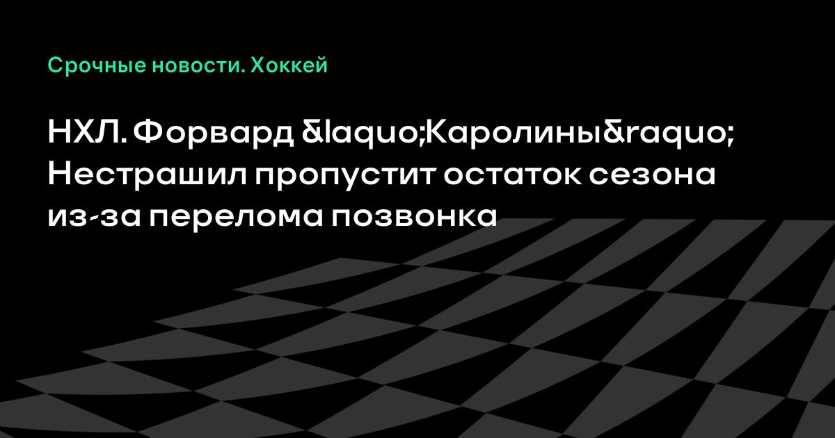 Нападающий «Каролины» Андрей Нестрашил выбыл из строя до конца сезона.