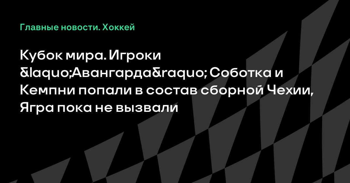 Кубок мира. Игроки «Авангарда» Соботка и Кемпни попали в состав сборной Чехии, Ягра пока не вызвали