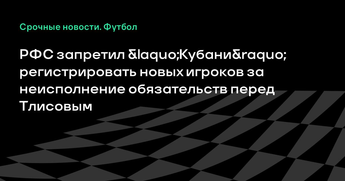 Отмечается, что «Кубань» не исполнила свои обязательства перед полузащитником Артуром Тлисовым, которому должна выплатить задолженность по трудовому договору. Его контракт истек в декабре, после чего клуб объявил, что стороны не смогли договориться о новом соглашении.