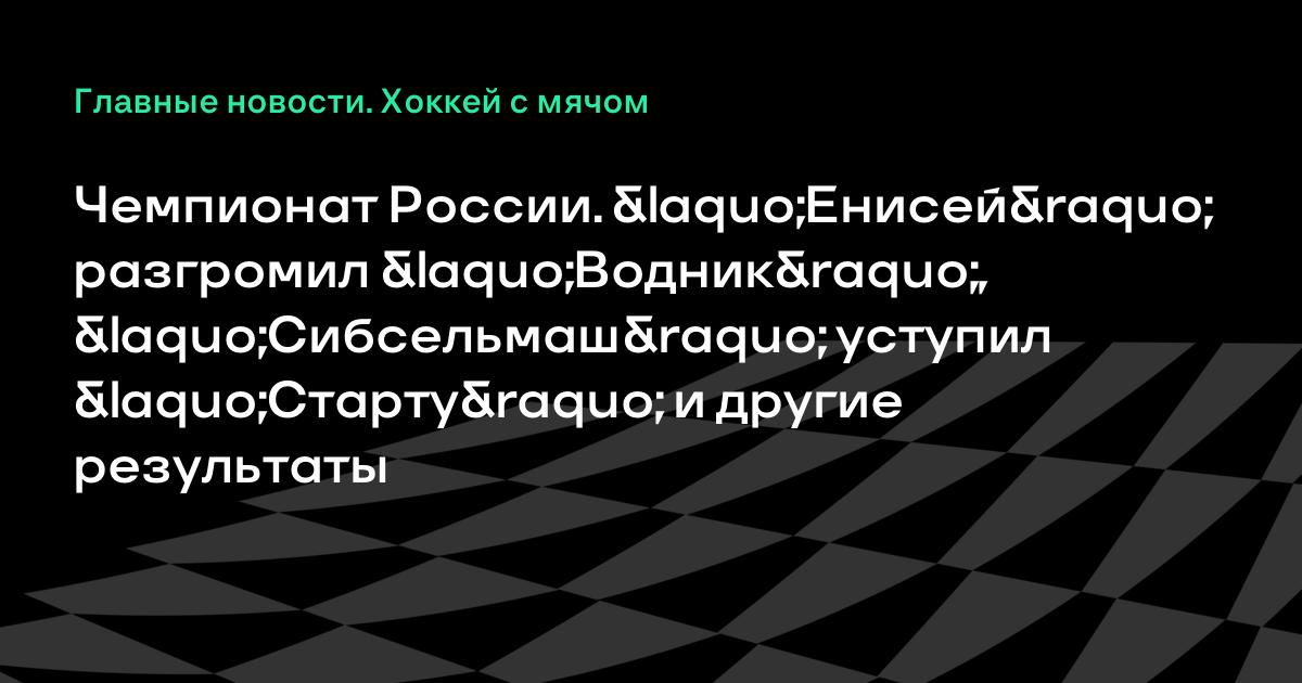 Сегодня прошли очередные матчи чемпионата России по хоккею с мячом. «Енисей» разгромил «Водник» (10:2), «Сибсельмаш» уступил «Старту» (4:7).