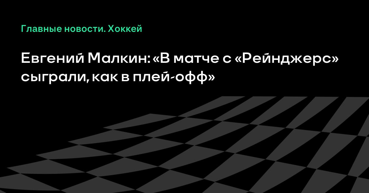 Евгений Малкин: «В матче с «Рейнджерс» сыграли, как в плей-офф»