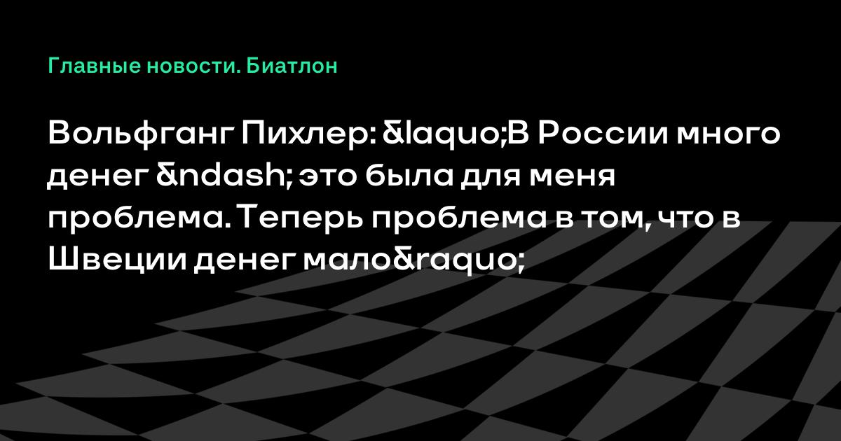 Вольфганг Пихлер: «В России много денег – это была для меня проблема. Теперь проблема в том, что в Швеции денег мало»