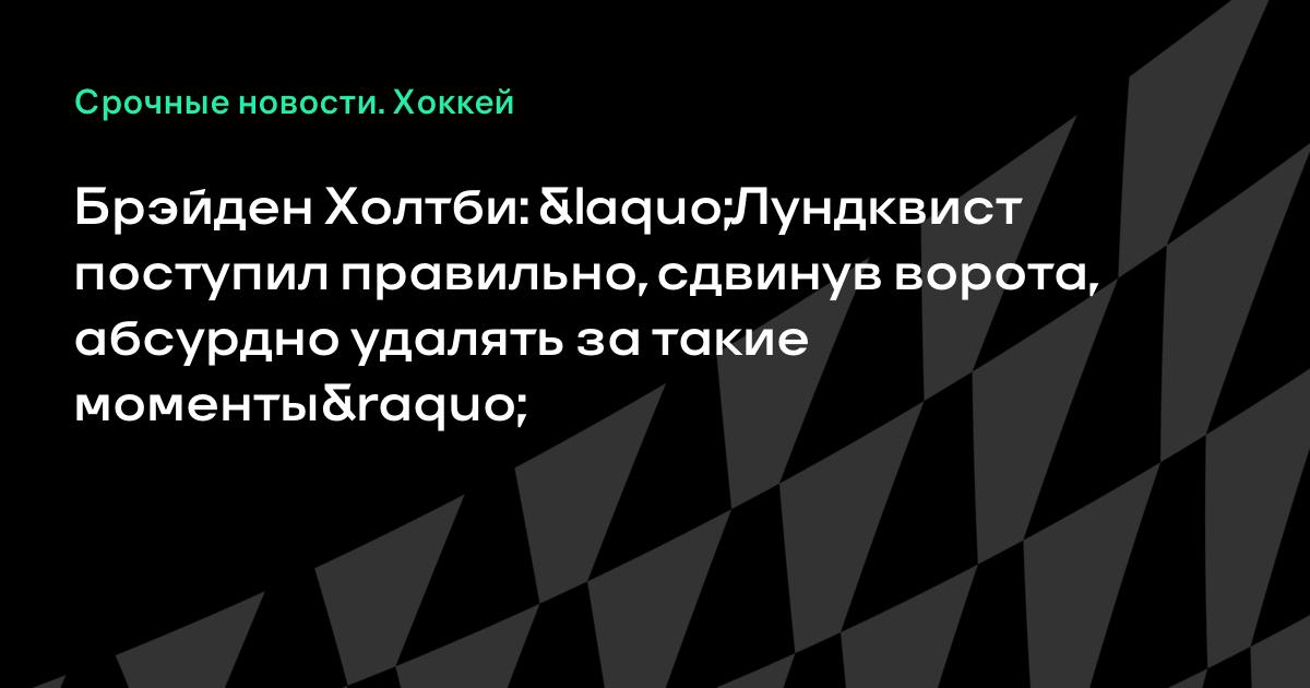 Брэйден Холтби: «Лундквист поступил правильно, сдвинув ворота, абсурдно удалять за такие моменты»