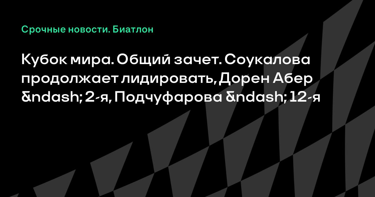 Кубок мира. Общий зачет. Соукалова продолжает лидировать, Дорен Абер – 2-я, Подчуфарова – 12-я