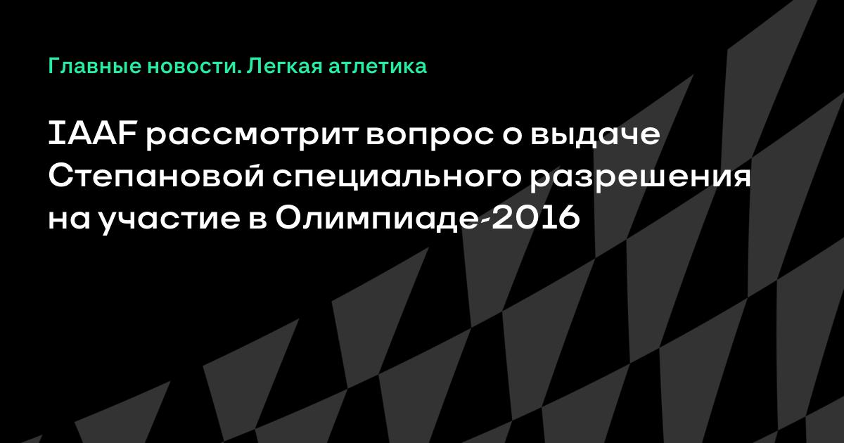 Международная ассоциация легкоатлетических федераций (IAAF) рассмотрит вопрос о предоставлении специального разрешения на участие в Олимпиаде-2016 российской бегунье Юлии Степановой.