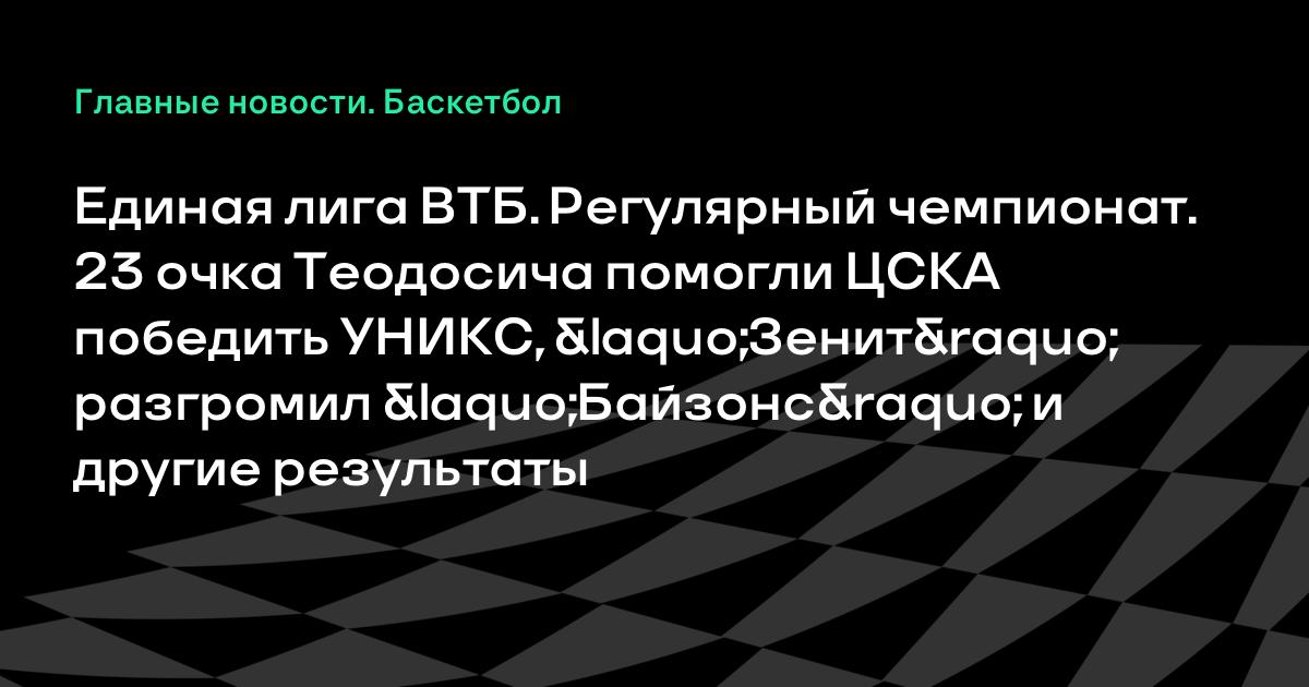Единая лига ВТБ. Регулярный чемпионат. 23 очка Теодосича помогли ЦСКА победить УНИКС, «Зенит» разгромил «Байзонс» и другие результаты