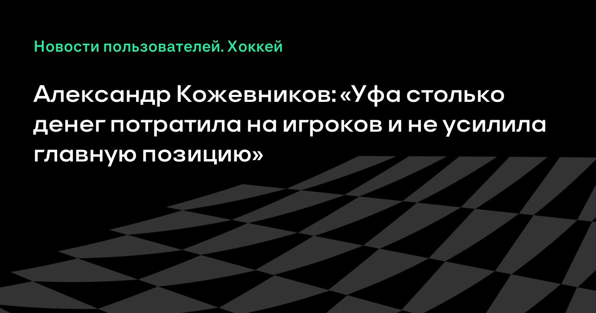 Александр Кожевников: «Уфа столько денег потратила на игроков и не усилила главную позицию»