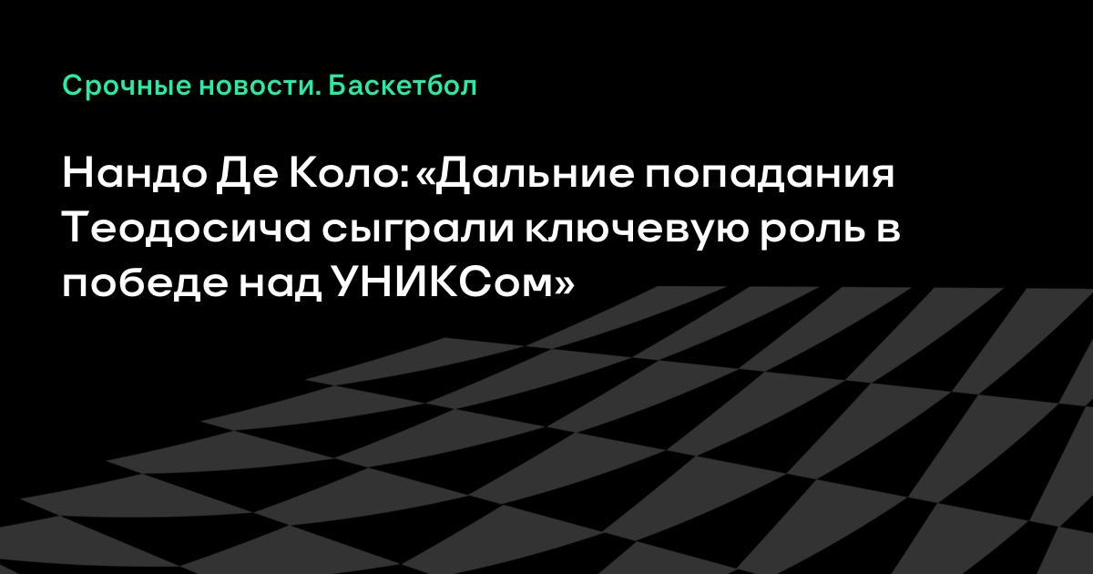 «Здорово начали матч, но во второй половине УНИКС вернулся в игру. В принципе, это было ожидаемо, все-таки у них много сильных игроков, обладающих хорошим броском. Нас немножко расслабила разница в счете во второй половине, и мы уже не так хорошо защищались. Но главное, что в итоге добились победы. Дальние попадания Теодосича во второй половине сыграли ключевую роль, знаем, что Милош может забивать эти броски, и они были важны для нас», — цитирует Де Коло «Р-Спорт».