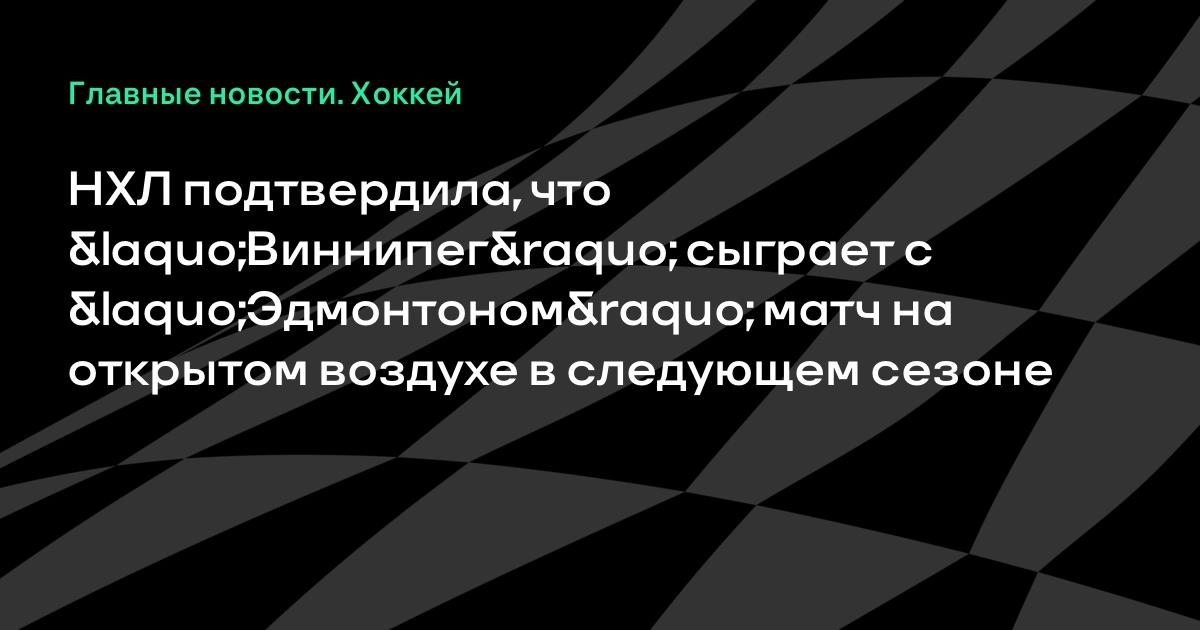 НХЛ подтвердила, что «Виннипег» сыграет с «Эдмонтоном» матч на открытом воздухе в следующем сезоне