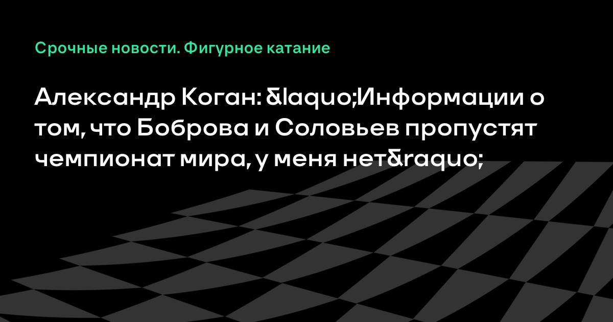 Александр Коган: «Информации о том, что Боброва и Соловьев пропустят чемпионат мира, у меня нет»
