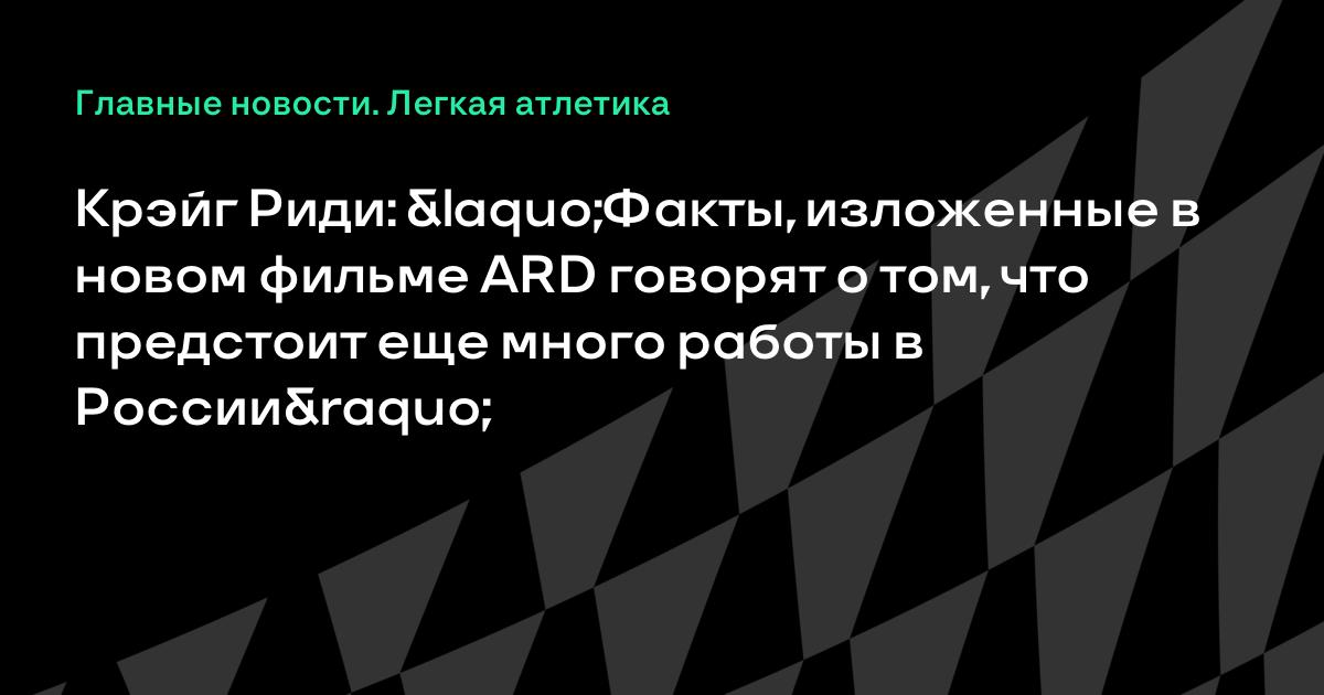 Президент Всемирного антидопингового агентства (WADA) Крэйг Риди сообщил, что организация обеспокоена обвинениями из нового фильма немецкого канала «ARD» о допинге в российской легкой атлетике.