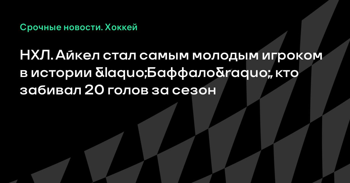 Форвард «Баффало» Джек Айкел в матче с «Торонто» (4:3 Б) стал самым молодым в истории клуба игроком, кто забивал 20 голов за сезон, информирует официальный твиттер клуба.