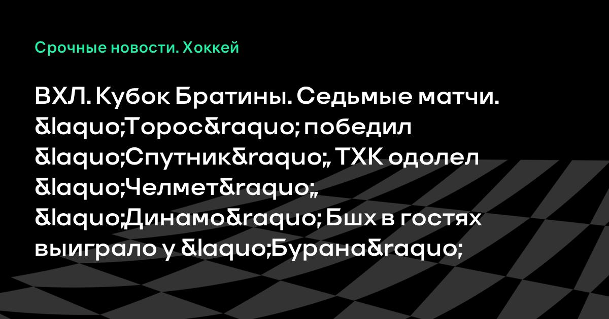 ВХЛ. Кубок Братины. Седьмые матчи. «Торос» победил «Спутник», ТХК одолел «Челмет», «Динамо» Бшх в гостях выиграло у «Бурана»