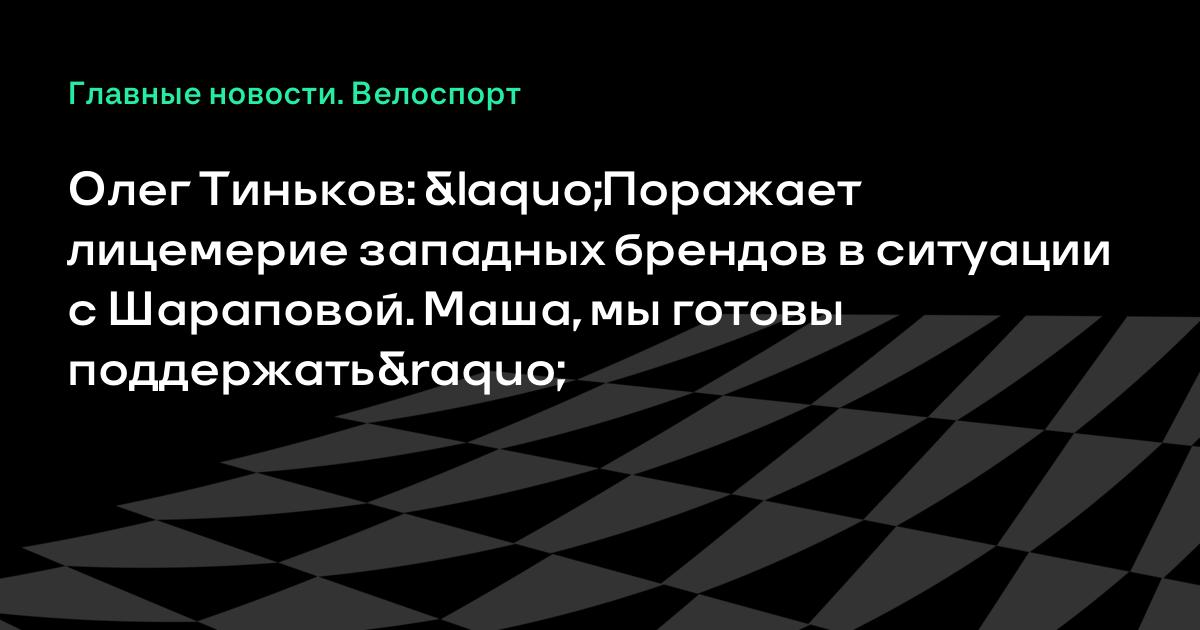 Владелец велокоманды Tinkoff Олег Тиньков прокомментировал расторжение спонсорских контрактов с теннисисткой Марией Шараповой, накануне сообщившей о положительной допинг-пробе.