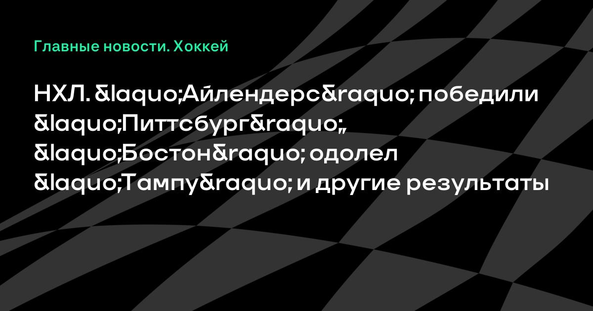 НХЛ. «Айлендерс» победили «Питтсбург», «Бостон» одолел «Тампу» и другие результаты