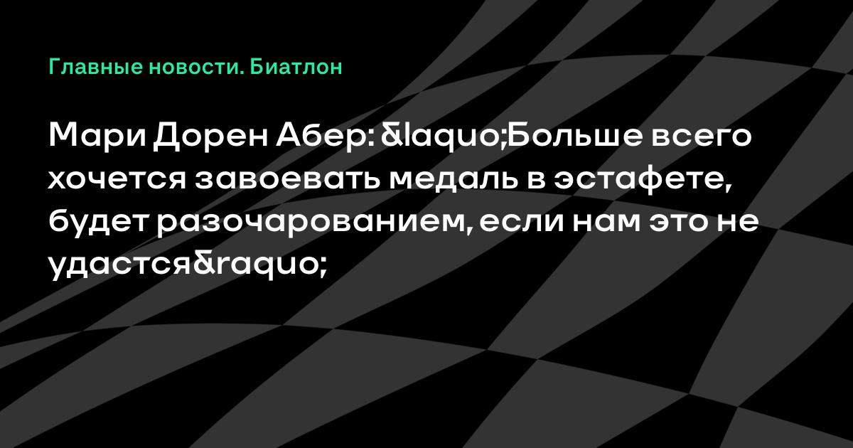 Французская биатлонистка Мари Дорен Абер рассказала об особенностях формата индивидуальной гонки, а также сообщила, что была бы не против завоевать медали во всех гонках чемпионата мира.
