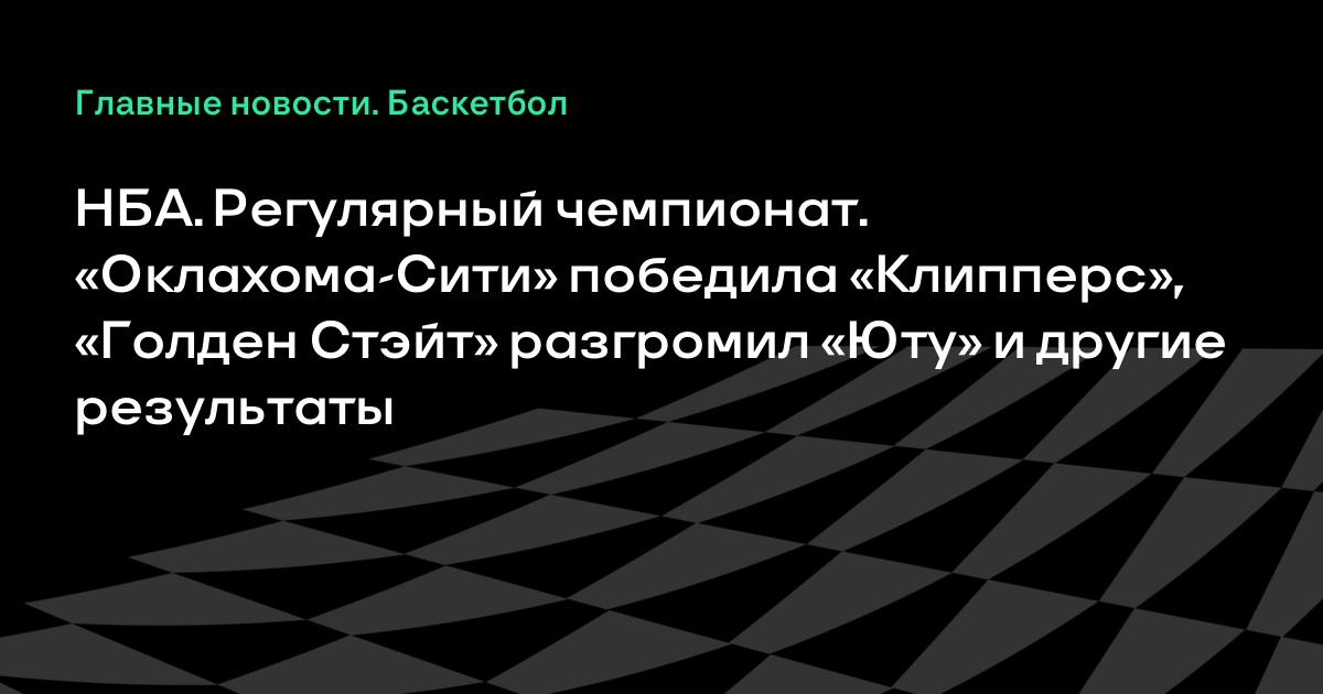 НБА. Регулярный чемпионат. «Оклахома-Сити» победила «Клипперс», «Голден Стэйт» разгромил «Юту» и другие результаты