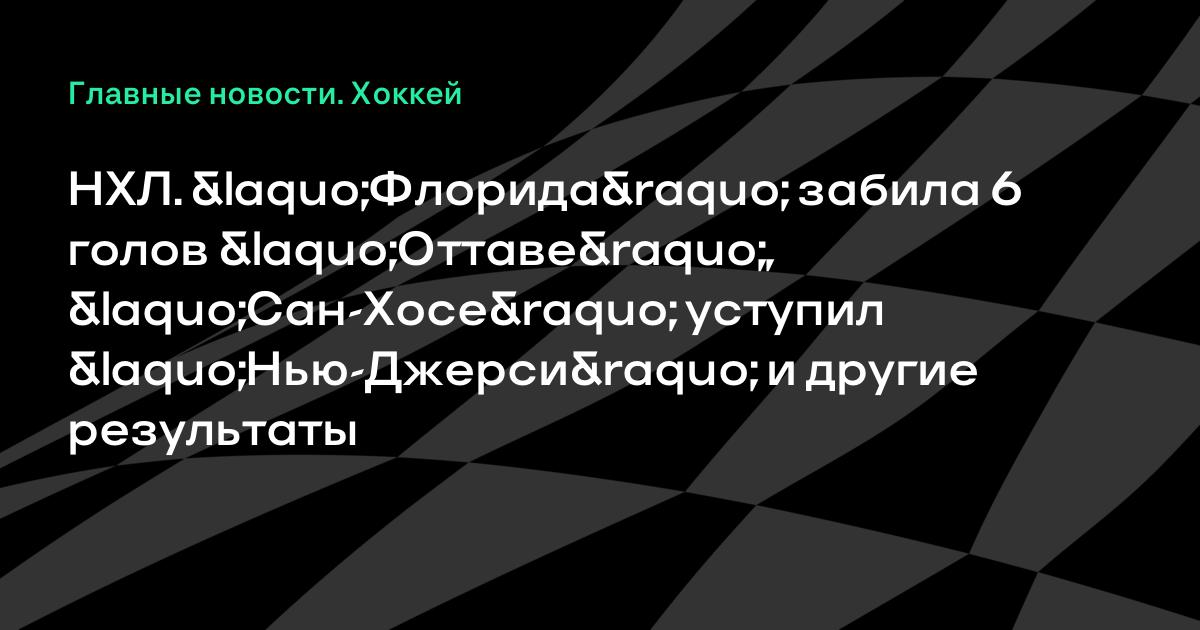 НХЛ. «Флорида» забила 6 голов «Оттаве», «Сан-Хосе» уступил «Нью-Джерси» и другие результаты