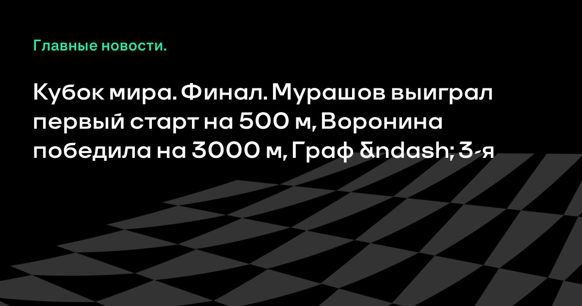 Кубок мира. Финал. Мурашов выиграл первый старт на 500 м, Воронина победила на 3000 м, Граф – 3-я