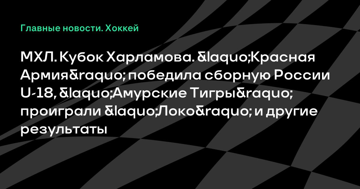 МХЛ. Кубок Харламова. «Красная Армия» победила сборную России U-18, «Амурские Тигры» проиграли «Локо» и другие результаты