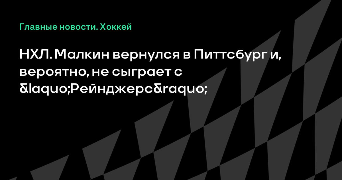 НХЛ. Малкин вернулся в Питтсбург и, вероятно, не сыграет с «Рейнджерс»