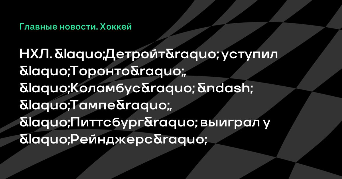 НХЛ. «Детройт» уступил «Торонто», «Коламбус» – «Тампе», «Питтсбург» выиграл у «Рейнджерс»