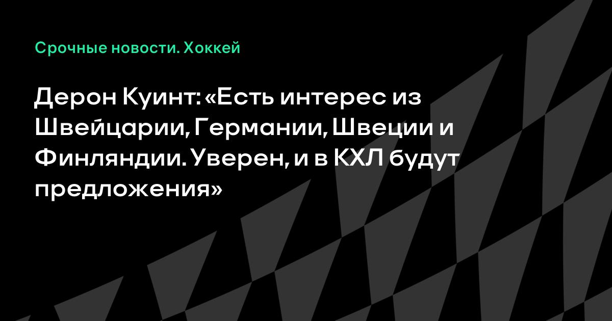 Дерон Куинт: «Есть интерес из Швейцарии, Германии, Швеции и Финляндии. Уверен, и в КХЛ будут предложения»