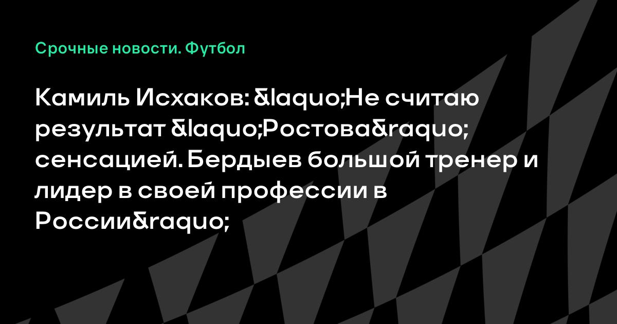 — Те, кто хорошо знаком с Бердыевым лично, удивляться его успехам точно не могут. Вот и я рад за него, но сенсацией результаты Курбана в Ростове не считаю. Он большой тренер и лидер в своей профессии, если говорить о России. Иной оценки его труд сегодня не имеет.