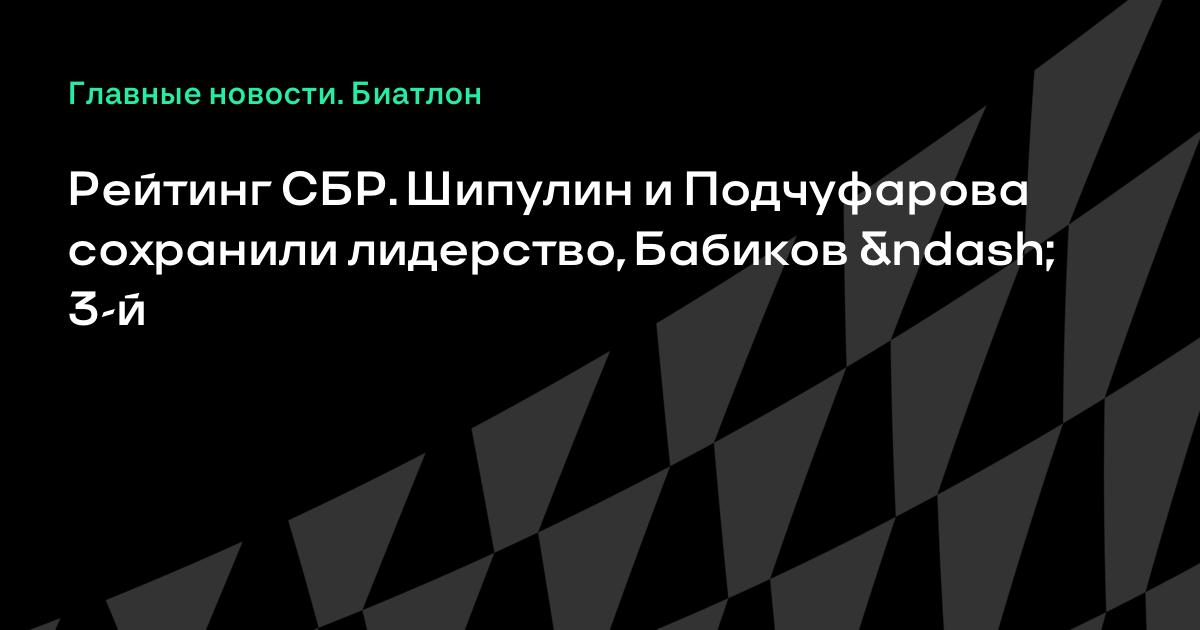 Рейтинг СБР. Шипулин и Подчуфарова сохранили лидерство, Бабиков – 3-й