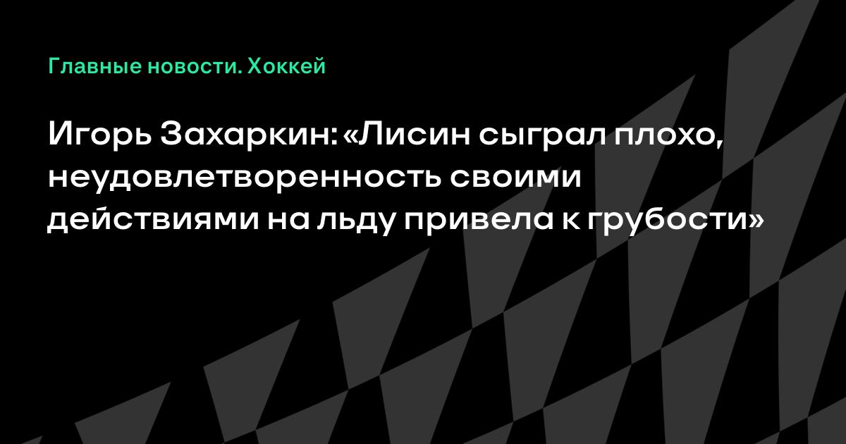 Игорь Захаркин: «Лисин сыграл плохо, неудовлетворенность своими действиями на льду привела к грубости»