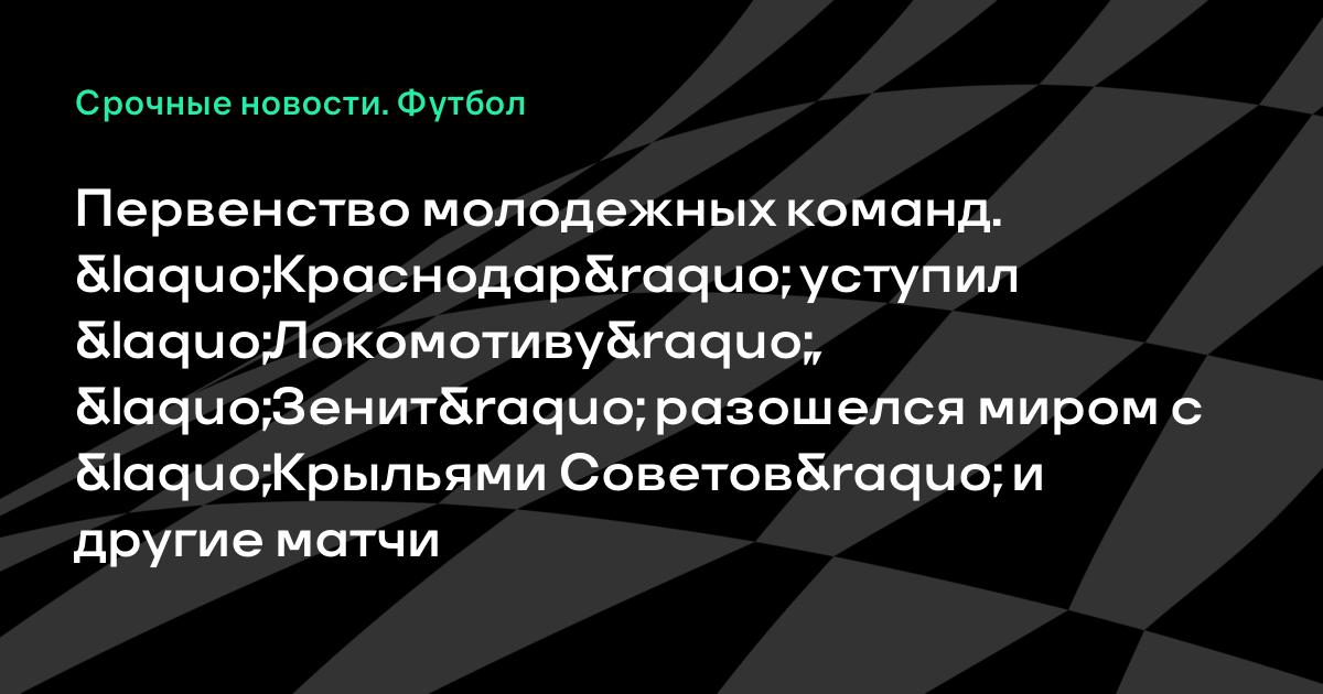 Первенство молодежных команд. «Краснодар» уступил «Локомотиву», «Зенит» разошелся миром с «Крыльями Советов» и другие матчи