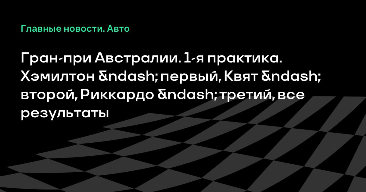 Гран-при Австралии. 1-я практика. Хэмилтон – первый, Квят – второй, Риккардо – третий, все результаты
